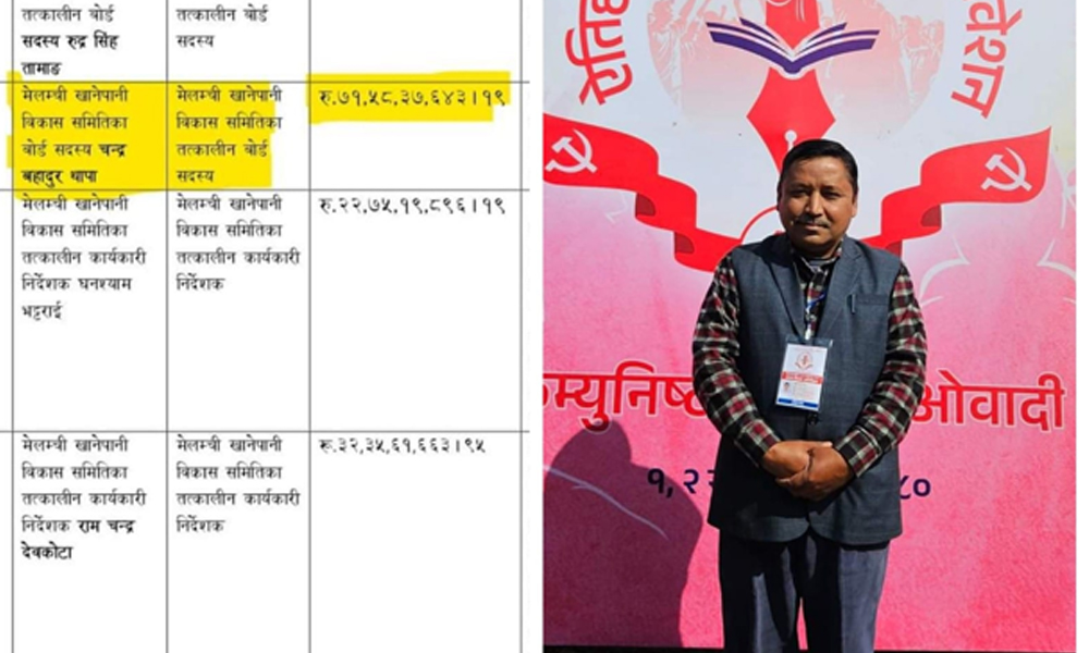 मेलम्चीको भ्रष्टाचारमा माओवादी केन्द्रीय सदस्य थापाविरुद्ध मुद्दा, ७१ करोड विगो दावी