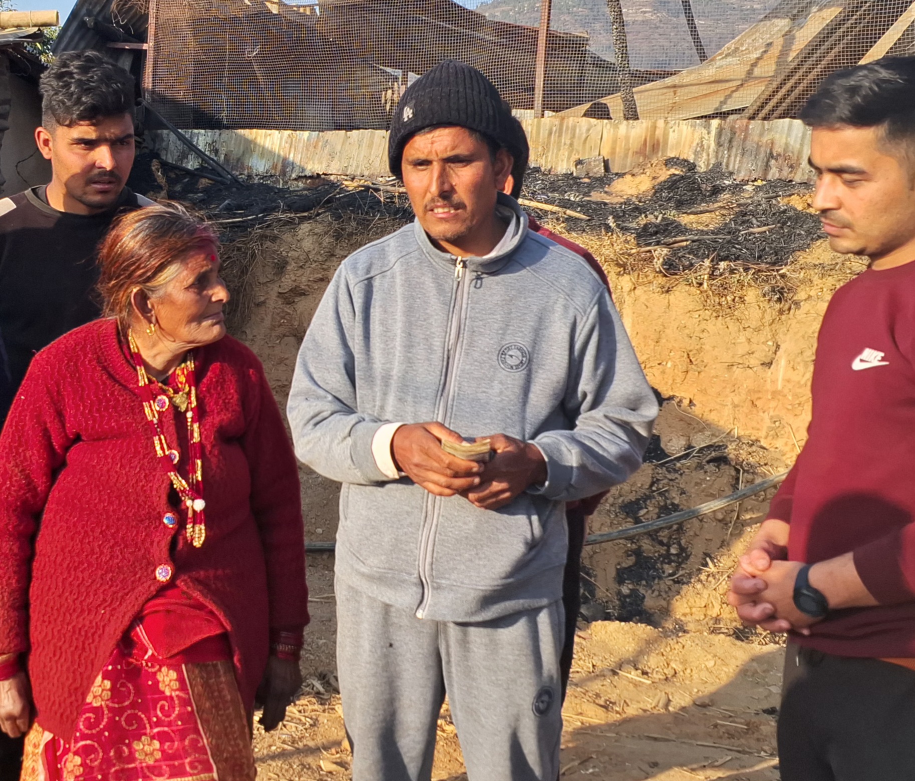 पिडितलाई रकम हस्तान्तरण गर्दै व्यावसायी मनाेज अधिकारीले अब आउने दिनमा व्यावसायलाई पुरानै अवस्थामा लैजान सहयाेग गर्ने राम श्रेष्ठ तथा पार्वती श्रेष्ठलाई धन्यवाद ज्ञापन गरे । दु:खमा परेकाे बेलामा सबैले सहयाेग गर्नुपर्नेमा युवा व्यवसायी अधिकारीले जाेड दिए ।