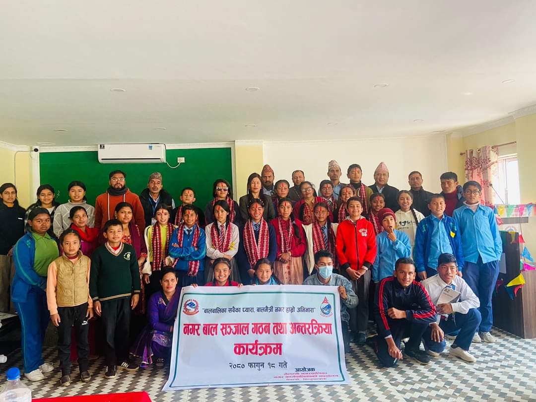 त्यस्तै सह सचिवमा कृष्टिना अधिकारी सहित १५ सदस्यीय नगर बाल सञ्जाल गठन गरिएको भट्टराईले जानकारी दिए । अहिले १३ सदस्य रहेकोमा एक जना अपांग र एक अल्पसंख्यकबाट गरि २ जना पछि मनोनीत गरिने बताइएको छ ।