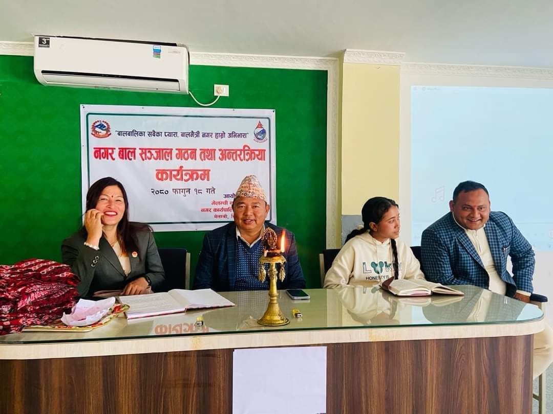 मेलम्ची नगर बाल सञ्जाल गठन तथा अन्तरक्रिया कार्यक्रमको मेलम्ची नगरपालिकाका प्रमुख आइतमान तामाङको प्रमुख आतिथ्यता, उपप्रमुख उमा प्रधानको बिशेष आतिथ्यता, सामाजिक विकास समिती संयोजक एबम् वडा नम्बर १० का अध्यक्ष अमृत खनालको आतिथ्यता र सञ्जालकी निवर्तमान अध्यक्ष सरिता नेपालीको अध्यक्षतामा सम्पन्न भएको हो ।