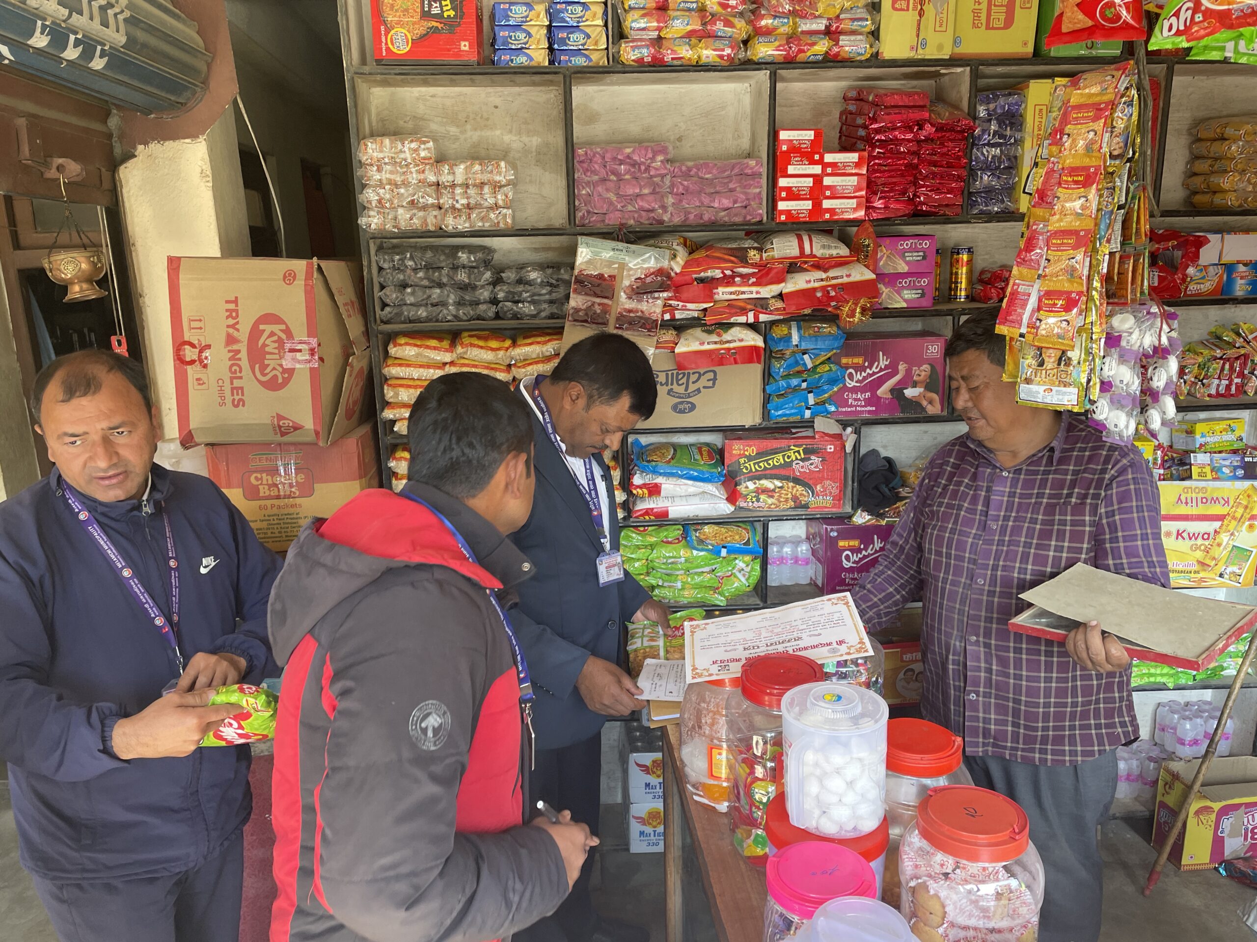 बजार अनुगमनका क्रममा खाद्य पसल ९, होटल ४, बेकरी तथा मिठाई पसल ४, हार्डवेयर २, खुल्ला रुपमा पेट्रोलियम पदार्थ बिक्रि गर्ने पसल ४, भेटेरीनरी तथा औषधी पसल ५ गरी २८ होटल तथा पसलहरुमा बिज्ञ टोली सहित अनुगमन गरिएको सहायक प्रमुख जिल्ला अधिकारी जित बहादुर भण्डारीले जानकारी दिए ।