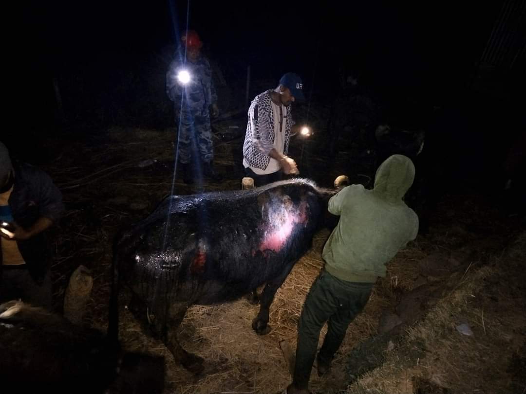 २ तल्ले काठ र जस्ताकाे फर्ममा आगलागी हुँदा त्यहाँ रहेकाे एउटा भैंसी मरेकाे छ । २ भैंसी र १ पाडा गम्भीर घाइते भएकाे प्रहरीकाे भनाई छ ।