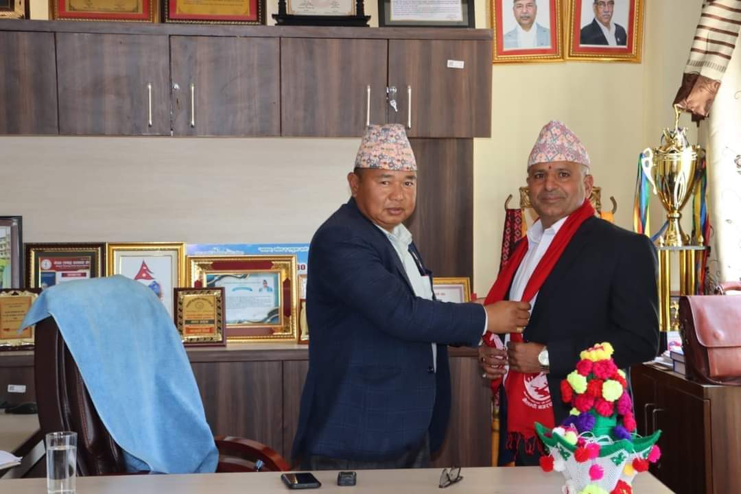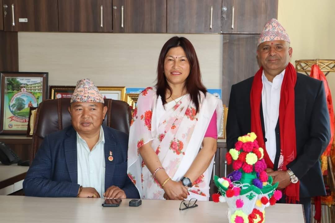 आज एक कार्यक्रमका बिच नगरपालिकाका प्रमुख आइतमान तामाङले प्रमुख प्रशासकीय अधिकृत अशाेक कुमार भट्टराईलाई नगरपालिकामा स्वागत गरे । अब कार्यालयकाे काम कारवाहि चुस्त गतिमा अघि बढ्ने प्रमुख तामाङले विश्वास व्यक्त गरे ।