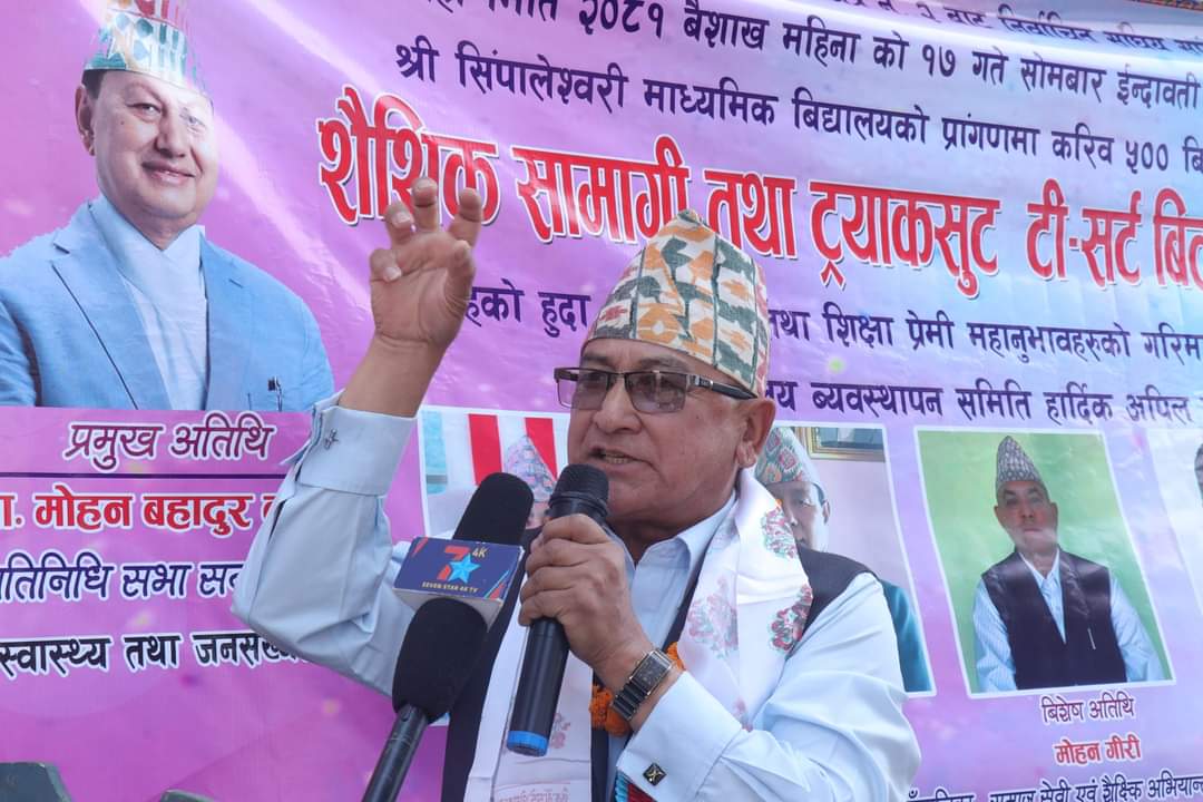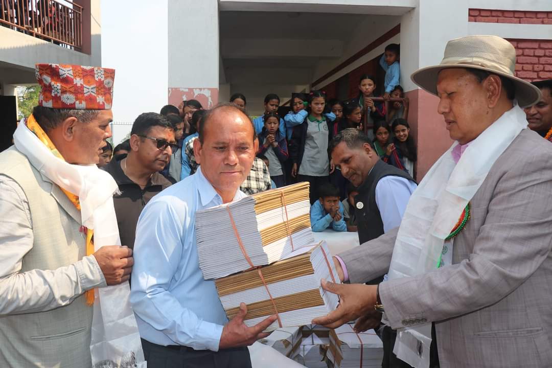समाजसेवी तथा शैक्षिक अभियन्ता मोहन बहादुर गिरीकाे सहयाेगमा साे सामाग्री बितरण गरिएकाे हाे । श्री सिम्पालेश्वरी माध्यमिक विद्यालय, श्री नवकन्या आधारभूत विद्यालय, श्री भूवनेश्वरी आधारभूत विद्यालय, श्री गोल्मेश्वरी आधारभूत विद्यालय, हिमान्चल आधारभूत विद्यालय, श्री बागेश्वरी आधारभूत विद्यालयका करिव ५४१ शिक्षक र विद्यार्थीलाई शैक्षिक सामग्री तथा ट्रयाकसुट टी-सर्ट लगायतका सामाग्रीहरु बितरण गरिएकाे हाे ।