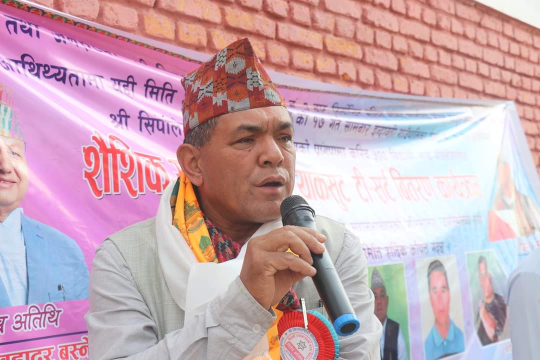 सिम्पालकाभ्रे । पूर्व स्वास्थ्य तथा जनसंख्या मन्त्री सिन्धुपाल्चोक जिल्ला क्षेत्र नं २ बाट निर्वाचित संघिय सांसद मोहन बहादुर बस्नेतकाे प्रमुख आतिथ्यतामा इन्द्रावती गाउँपालिका वडा नं १ का सबै विद्यालयका विद्यार्थी र शिक्षकलाई शैक्षिक सामाग्री तथा ट्रयाकसुट टी-सर्ट बितरण गरिएकाे छ ।