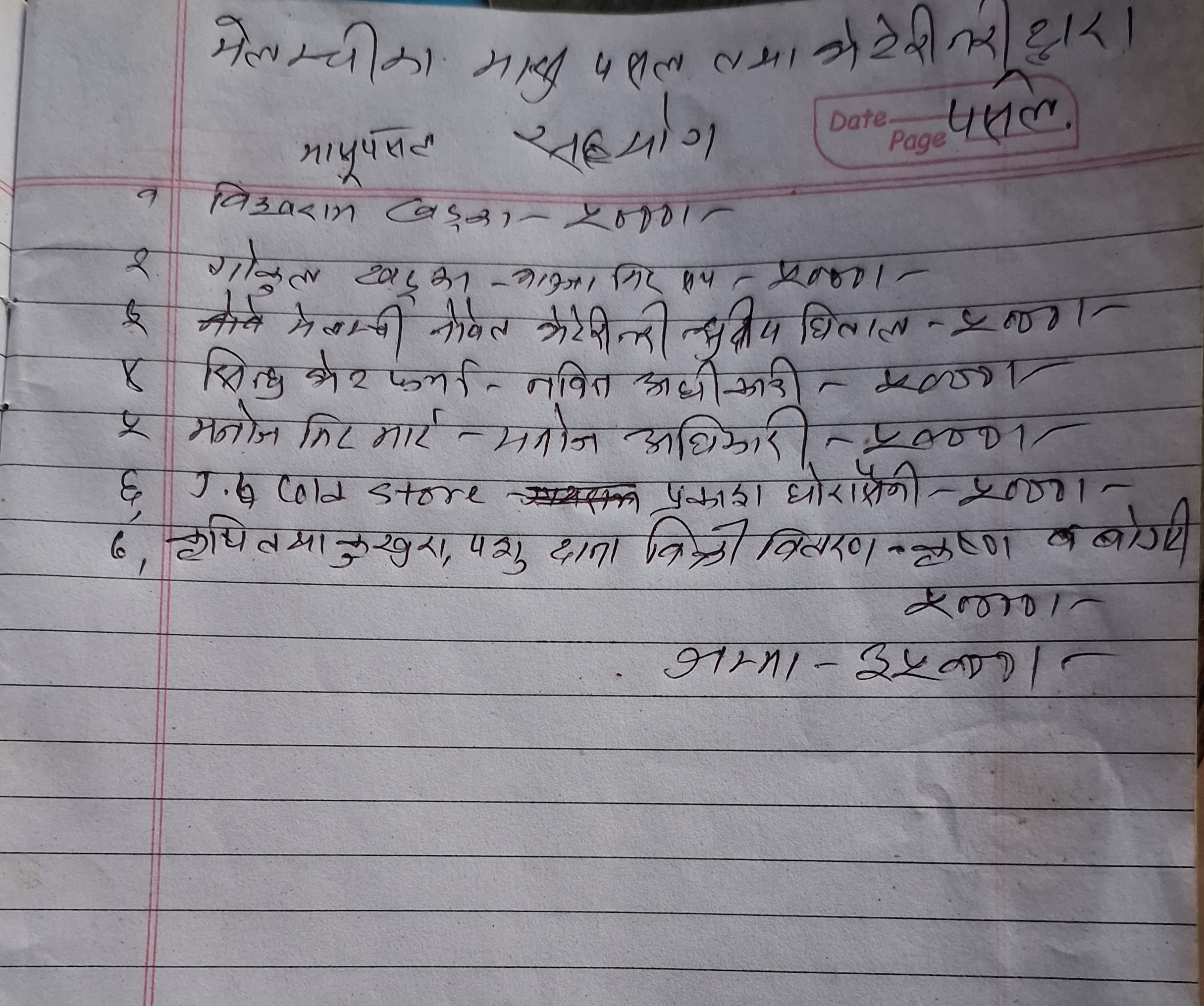 विश्वराम मासु पसलका विश्वराम खड्का, भान्जा मिटसपका गाेकुल खड्का, मेलम्ची नाेवेल भेटेरीनरीका सुदिप धिताल, सिन्धु भेट फर्माका नवीन अधिकारी, मनाेज मिट मार्टका मनाेज अधिकारी, J एण्ड G काेल्ड स्टाेरका प्रकाश घाेरासैनी र कृषि तथा कुखुरा पशु दाना बिक्री वितरण का कृष्ण बहादुर बाेगटी बाट संकलित जनहि ५,५ हजार सहयाेग रकम पिडित परिवारलाई हस्तान्तरण गरिएकाे व्यवसायी मनाेज अधिकारीले जानकारी दिए ।
