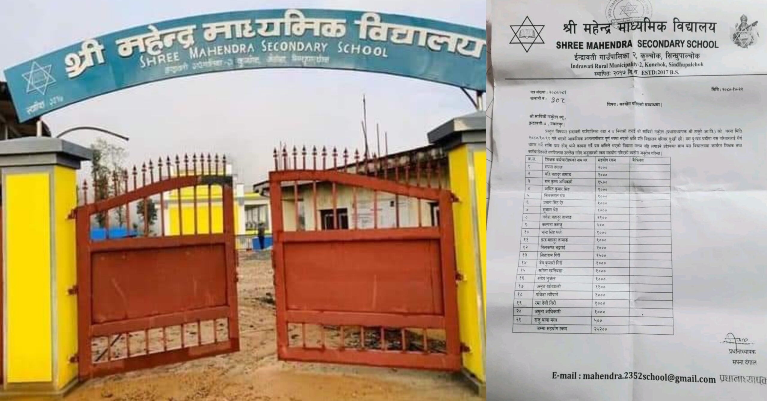 महेन्द्र माविका शिक्षक, कर्मचारीद्वारा टाकुरे आगलागी पिडितलाई आर्थिक सहयाेग