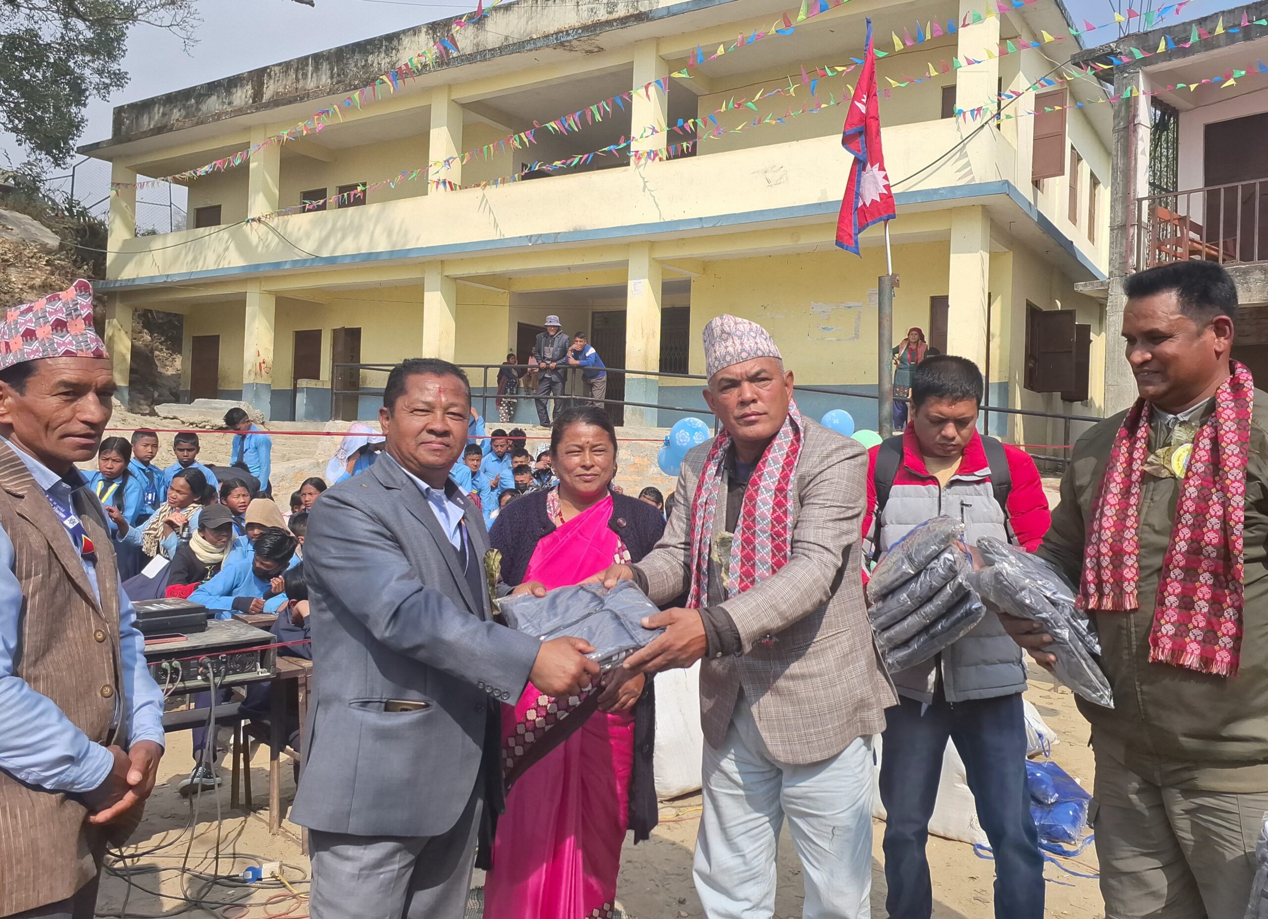 सिन्धुपाल्चाेक । नवलपुर माध्यमिक विद्यालयका तीन सय त्रीचालिस शिक्षक, विद्यार्थीलाई ट्र्याक सुट वितरण गरिएकाे ।
