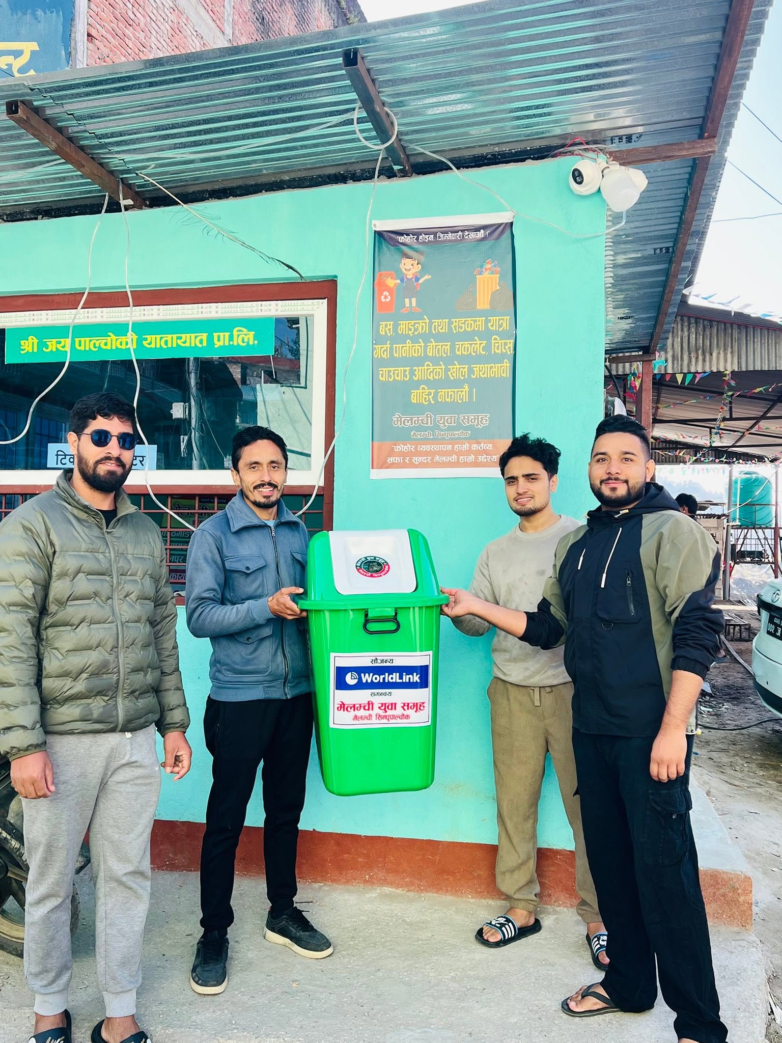 मेलम्ची युवा समूहकाे अनुराेधमा इन्टरनेट सेवा प्रदायक कम्पनी वर्ल्डलिंकले डस्टबिन सहयाेग गरेकाे छ। कम्पनीले आफ्नाे सामाजिक उत्तरदायित्व अन्तर्गत केही थान फाेहाेर फाल्ने डस्टबिन सहयाेग गरेकाे हाे ।