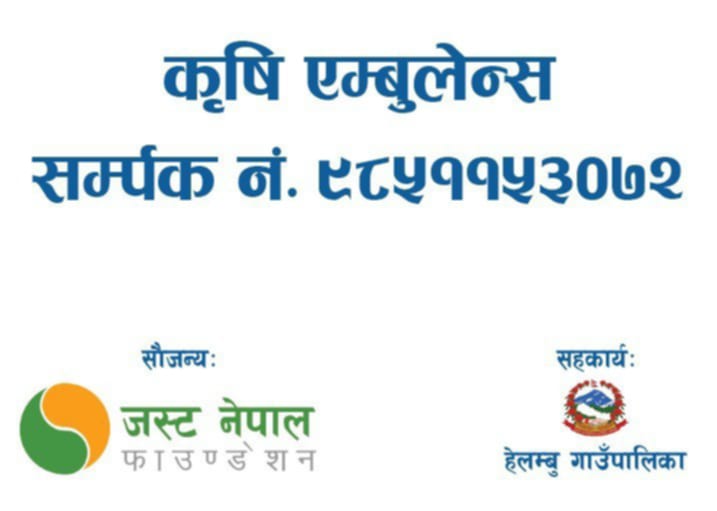 हेलम्बु गाउँपालिकामा कृषकको उत्पादनलाई सहज रूपमा बजारसम्म पु¥याउने उद्देश्यसहित कृषि एम्बुलेन्स सेवा सञ्चालनमा ल्याइएको छ। हेलम्बु गाउँपालिकाको सहकार्य तथा जस्ट नेपाल फाउन्डेसनको सहयोगमा सुरु गरिएको उक्त सेवाले स्थानीय किसानलाई उत्पादनदेखि बजारीकरणसम्म प्रत्यक्ष सहयोग पु¥याउने विश्वास लिइएको छ ।